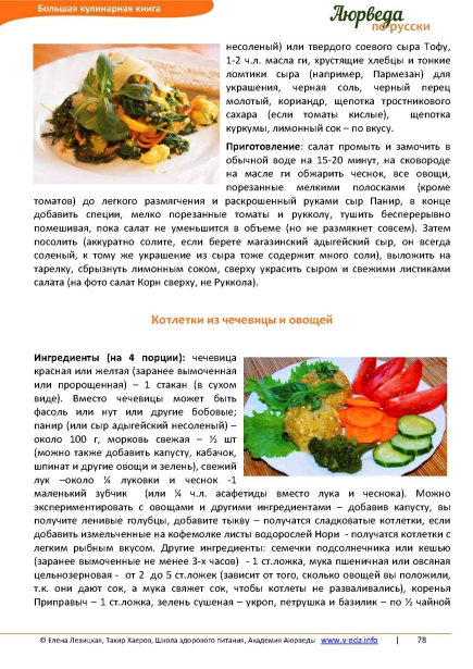 Поэтому в книге «Аюрведа по-русски» вы найдете для себя множество новых лакто-вегетарианских блюд интернациональной кухни, но с русским акцентом. Рецепты адаптированы и блюда по ним готовятся с меньшим количеством соли, специй и добавок, чем порой можно увидеть в оригинале рецепта.